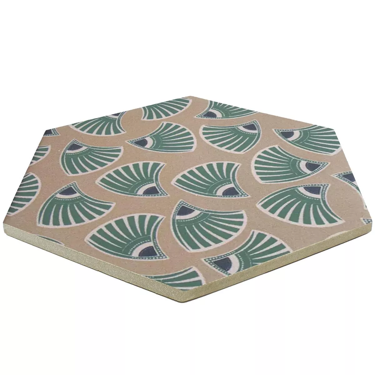 "Modena Hexagon Decor 6" porslinsplattor i stengods ger ditt rum en fascinerande blandning av blommor i brunt och grönt. Med en tjocklek på 10 mm är de perfekta för våtutrymmen, duschar, badrum, kök, vardagsrum och inomhusutrymmen.
