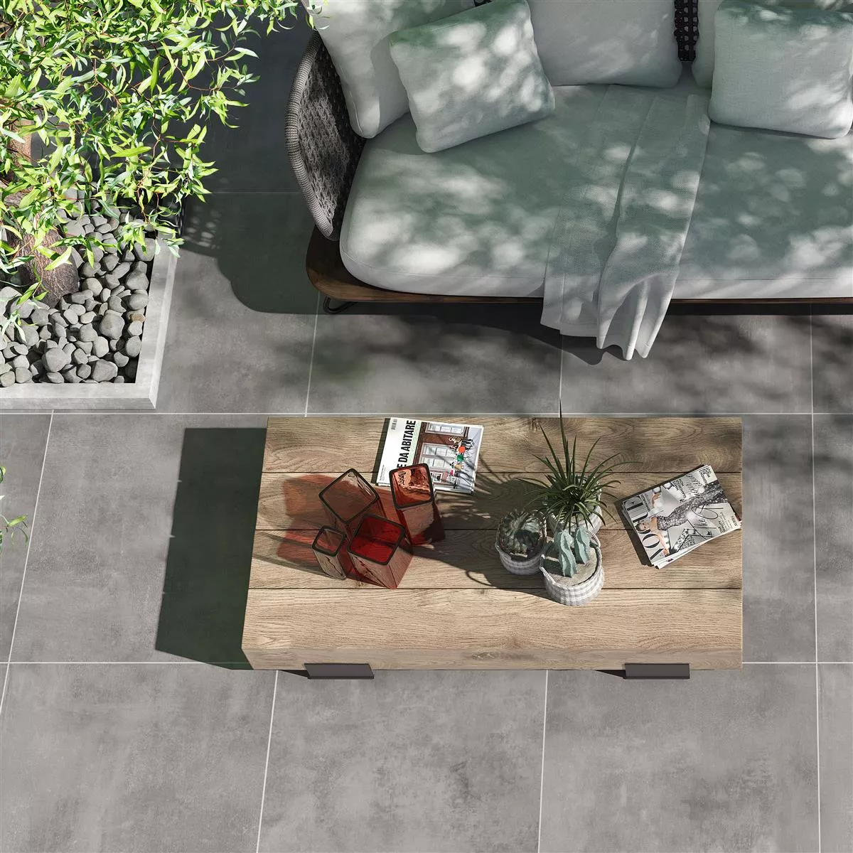 Uteplatsplattorna "Mossburg Stone Look Light Grey" ger naturlig elegans till ditt utomhusområde. I en förpackning på 0,64m² erbjuder dessa rektangulära porslinstengodsplattor (80x80cm) en generös yta för terrasser, vardagsrum, badrum och kök. Med en tjocklek på 20 mm är de robusta och frostbeständiga, idealiska för utomhusbruk. Den glaserade, matta ytan i ljusgrå och halkskyddet R10/B ger plattorna ett autentiskt stenutseende och garanterar säkerheten.
