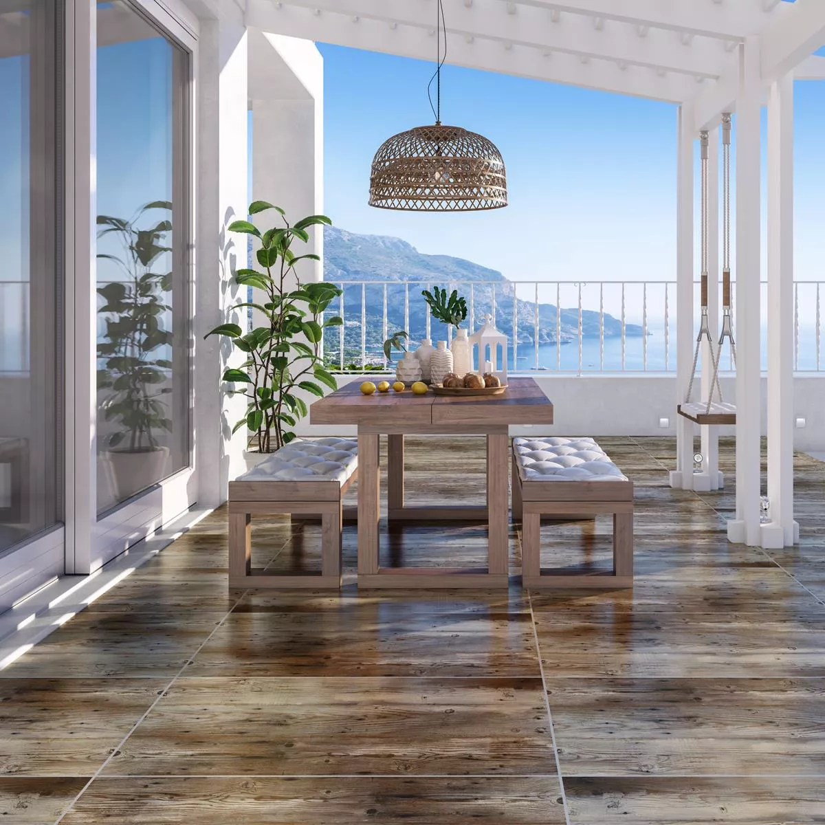 Dessa plattor är gjorda av högkvalitativt porslinsstengods och erbjuder enastående hållbarhet och motstånd. Den matta, glaserade ytan imiterar den autentiska trälooken, som är imponerande både inomhus och utomhus. Med en hög nötningsbeständighet (nötningsklass 4) och ett halkskydd på R10 är dessa plattor särskilt säkra och hållbara.