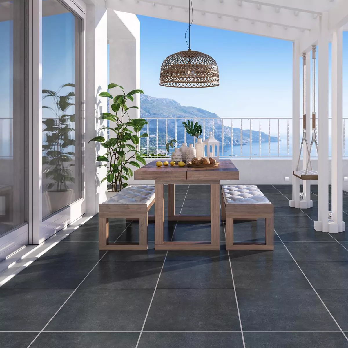 -  Färg : Hagen porslinsstengods uteplatsplattor finns i grafitfärg.