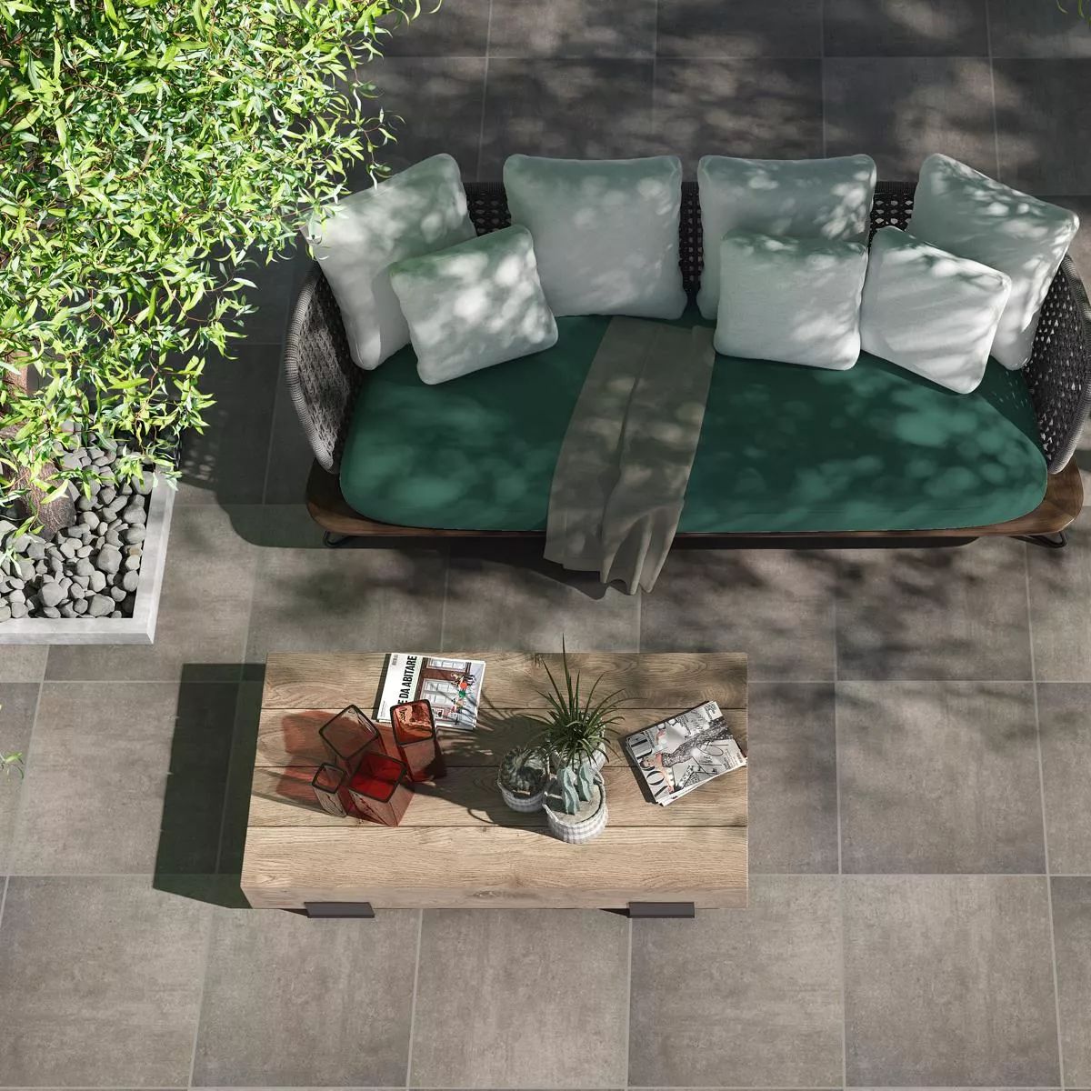 Den matta ytan på panelerna förmedlar en elegant naturstenslook, som ger ditt rum eller uteområde en stilren och naturlig look. Tack vare porslinsmaterialet i stengods har plattorna hög nötningsbeständighet (nötning 4) och är frostbeständiga, vilket gör dem idealiska för användning på terrasser, balkonger och gångvägar.