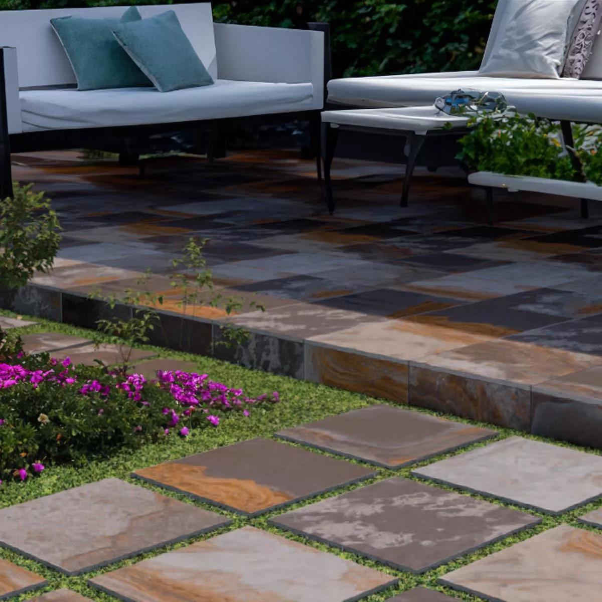 Sanleos terrassplattor i brons kombinerar naturstenens tidlösa skönhet med hållbarheten hos porslinsstengods. I formatet 60x60cm och en tjocklek på 20mm erbjuder de en perfekt kombination av estetik och funktionalitet.