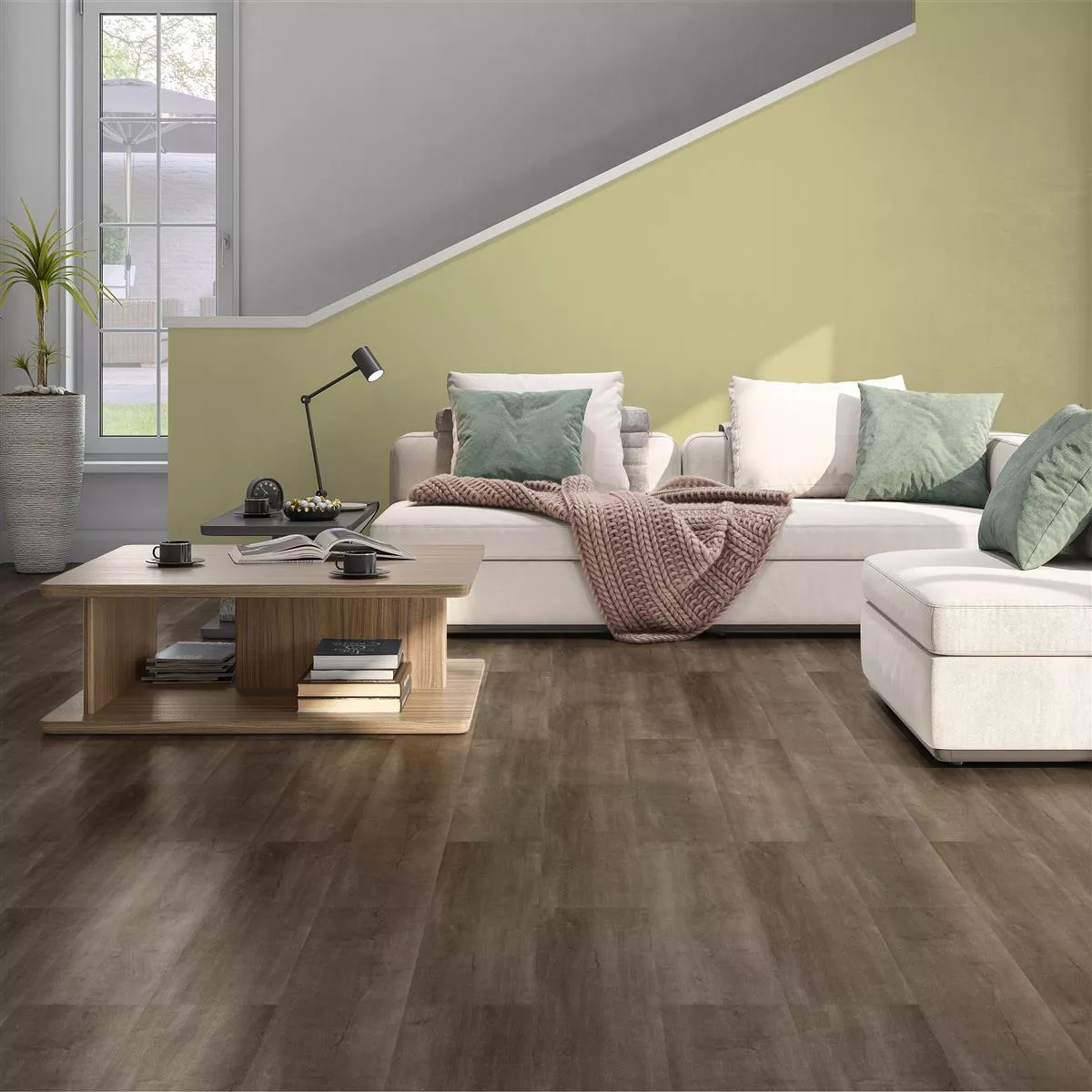 Vinylgolvet är lämpligt för inomhusbruk samt för våtutrymmen som kök och badrum. Den är lättskött och kan lätt rengöras för att hålla den i gott skick. Dessutom är den tillräckligt hållbar för att klara familjelivets dagliga krav.